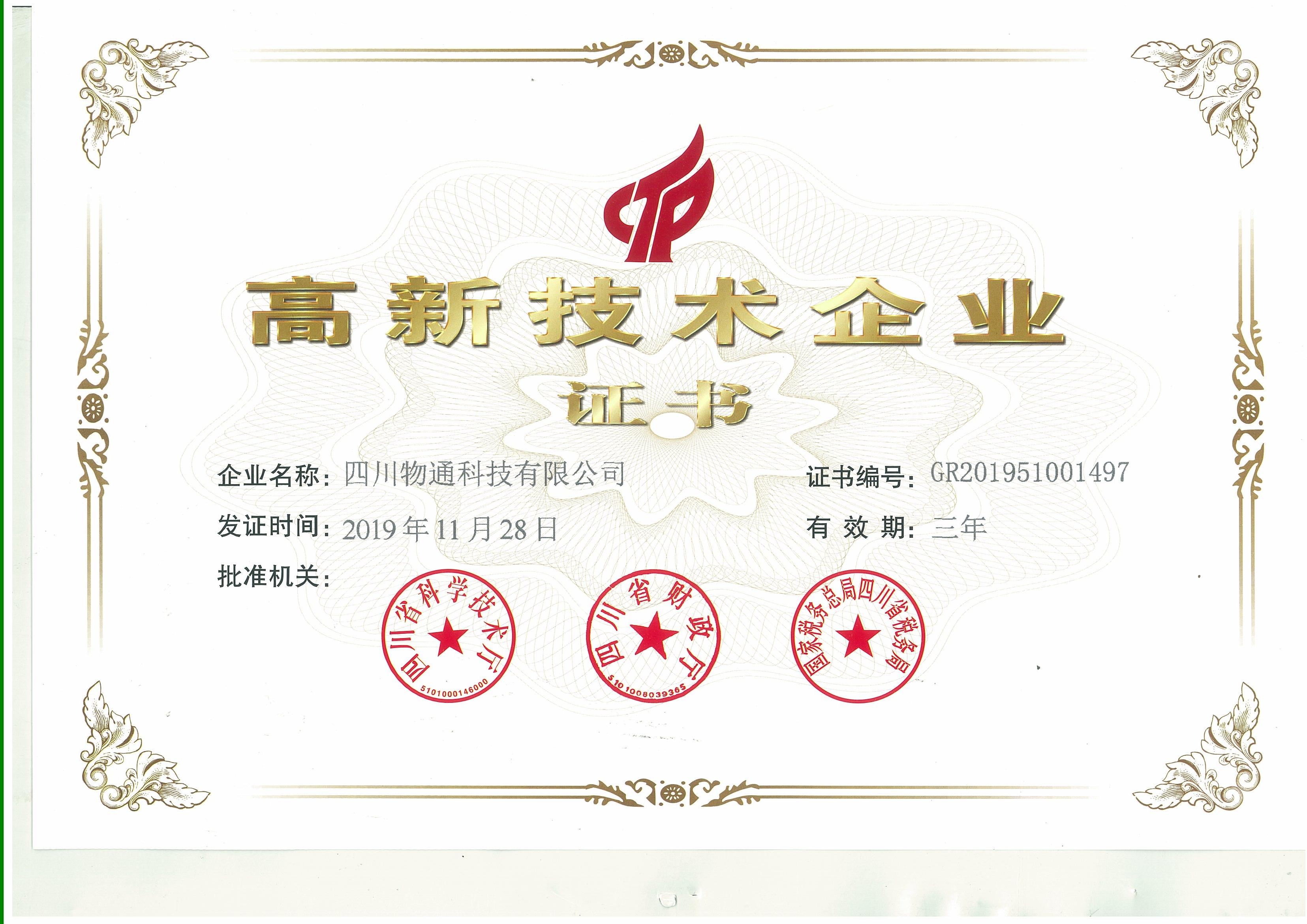熱烈祝賀四川物通科技集團有限公司取得高新技術(shù)企業(yè)證書!