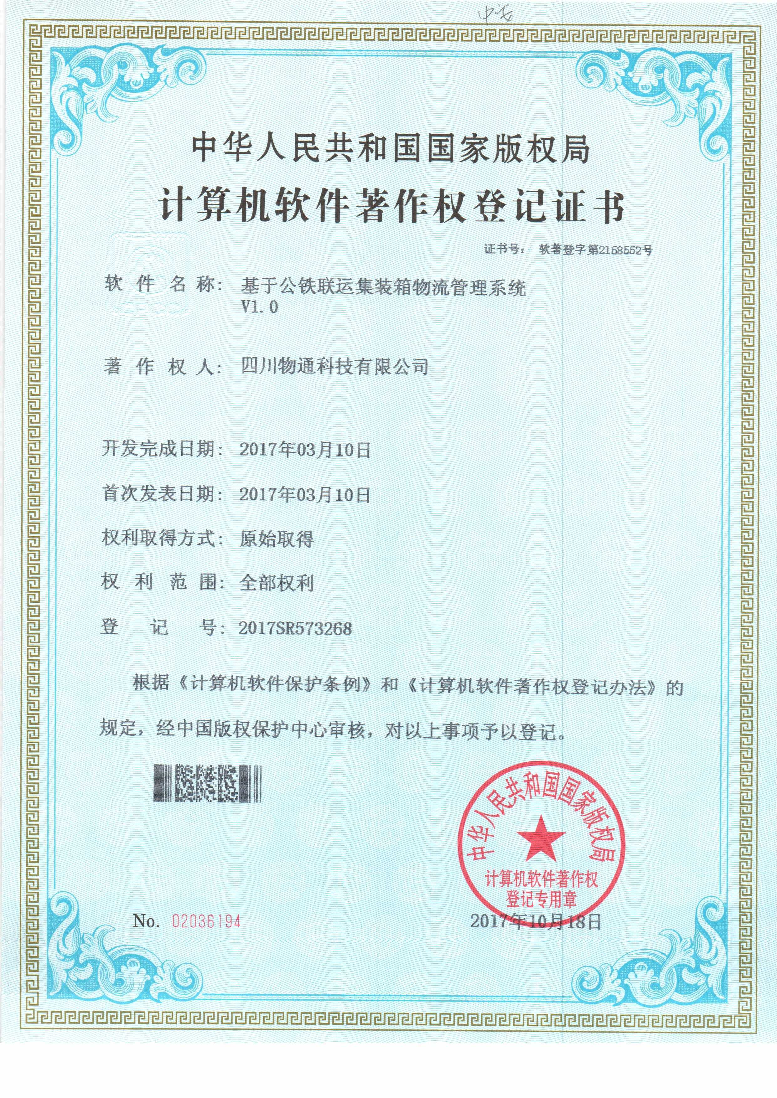 四川物通科技集團(tuán)有限公司取得兩項(xiàng)計(jì)算機(jī)軟件著作權(quán)證書