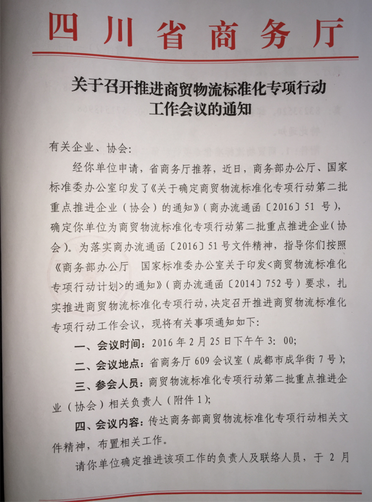 四川物通科技參加商貿(mào)物流標(biāo)準(zhǔn)化專項(xiàng)行動(dòng)工作會(huì)