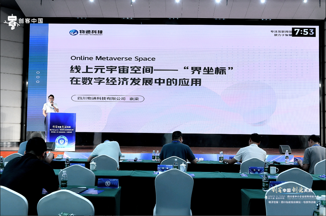 總經(jīng)理袁梁先生作為物通科技的參賽代表參與了企業(yè)組的路演。他在演講中重點介紹了物通科技基于虛幻引擎、云渲染、AI以及區(qū)塊鏈等前沿技術(shù),自主打造的線上元宇宙平臺——“界坐標(biāo)”在數(shù)字經(jīng)濟發(fā)展中的應(yīng)用思路與成果。