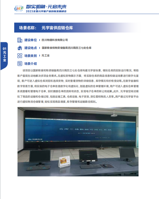 《成都元宇宙典型應(yīng)用場景案例集》展示了70多個典型應(yīng)用場景案例,體現(xiàn)了元宇宙在各個領(lǐng)域的高水平實踐示范。物通科技在元工業(yè)方面的兩個項目——"白酒智能釀造工業(yè)元宇宙場景"和"元宇宙供應(yīng)鏈倉庫",憑借其技術(shù)創(chuàng)新和降本增效的貢獻(xiàn)得到了政府有關(guān)部門的認(rèn)可,并成功被納入案例集中。
