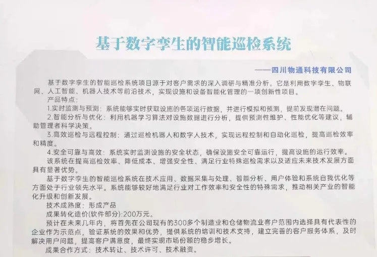 本次活動(dòng)以推動(dòng)行業(yè)科技創(chuàng)新為核心,四川物通科技集團(tuán)有限公司作為行業(yè)技術(shù)領(lǐng)先企業(yè),榮耀受邀出席,并在啟動(dòng)儀式上隆重展示了其自主研發(fā)的“基于數(shù)字孿生的智能巡檢系統(tǒng)項(xiàng)目”,引發(fā)廣泛關(guān)注與贊譽(yù)。