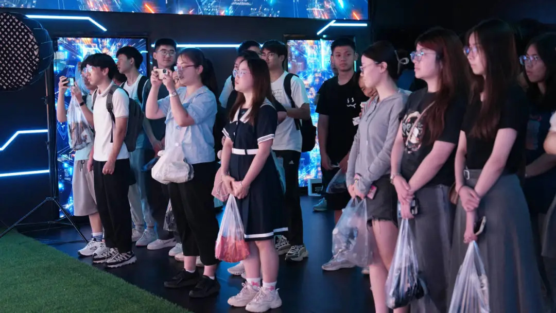 上午,近百名師生先參觀了物通科技打造的近1000平米的界坐標·元宇宙數(shù)智實驗工場,深入感受了實驗工場作為新質(zhì)生產(chǎn)力的孵化基地,如何推動酒類生產(chǎn)、倉儲管理、智慧文旅等實體產(chǎn)業(yè)向智能化、數(shù)字化轉(zhuǎn)型升級,釋放科技與產(chǎn)業(yè)融合的無限潛能。