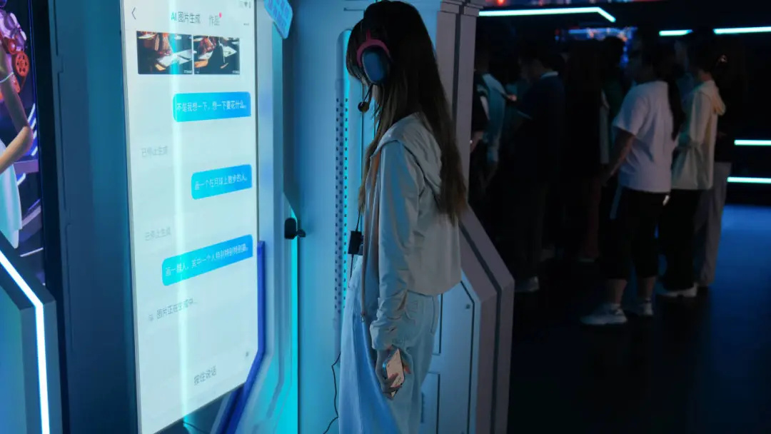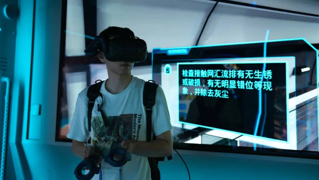 ? 師生們對實驗工場里先進的頭顯設(shè)備、豐富的虛實交互內(nèi)容興趣十足,并積極學(xué)習(xí)體驗。尤其是物通科技自主開發(fā)的多款VR虛擬職業(yè)培訓(xùn)系統(tǒng)、AI大語言模型數(shù)字人、逼真的裸眼3D內(nèi)容、VR+MR深度交互游戲、虛擬拍攝等場景,師生們都饒有興趣地嘗試互動。