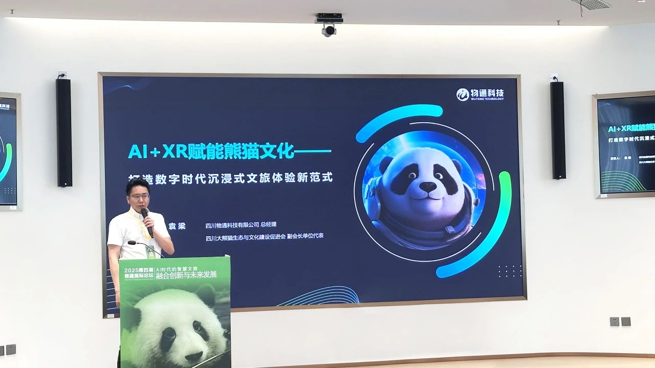 四川省大熊貓生態(tài)與文化建設(shè)促進(jìn)會(huì)副會(huì)長(zhǎng)單位——四川物通科技有限公司(以下簡(jiǎn)稱“物通科技”)受邀參會(huì),總經(jīng)理袁梁代表公司發(fā)表題為“AI+XR賦能熊貓文化——打造數(shù)字時(shí)代沉浸式文旅體驗(yàn)新范式”的主題演講,重磅發(fā)布線上線下融合的“大熊貓?jiān)钪嫔鷳B(tài)體驗(yàn)空間”。