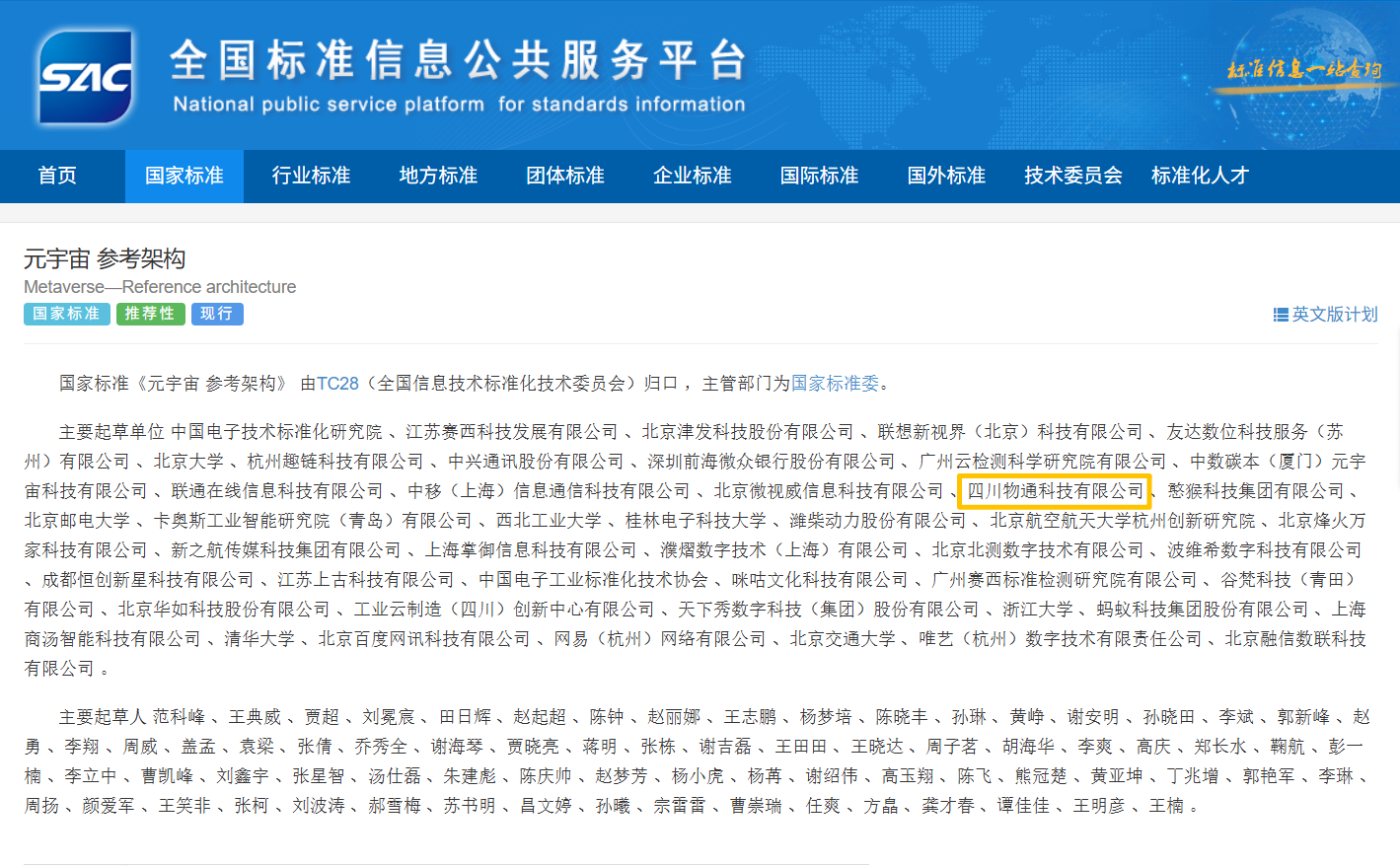 四川物通科技集團有限公司作為本標準的主要參編起草單位之一,深度參與了標準內(nèi)容的構建與研討工作,結(jié)合自身在虛實交互、XR沉浸式內(nèi)容系統(tǒng)與多場景平臺部署方面的實踐經(jīng)驗,為標準在架構設計、功能定義和產(chǎn)業(yè)普適性方面提供了企業(yè)級技術支撐。